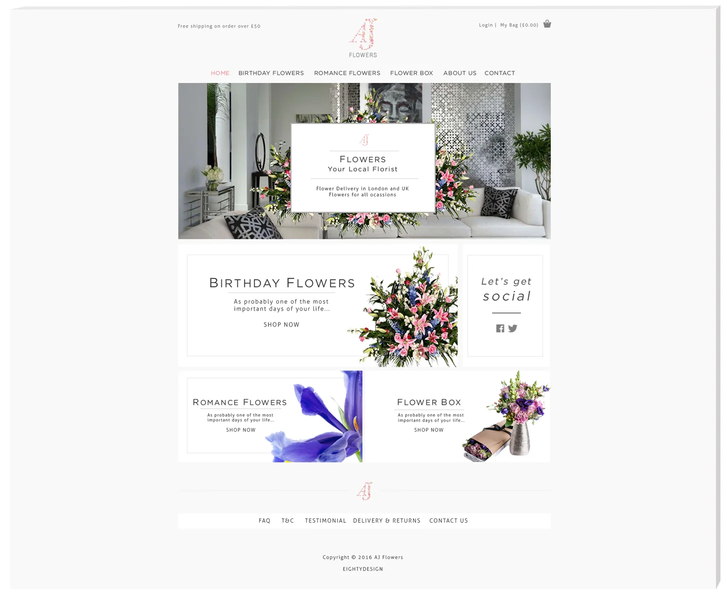 AJ Flowers services make sending fresh flowers easy! Users can make an order online or call the shop to place order. The task was to create a site on a custom Wordpress theme based on the mockups provided by the client, to develop a unique and multifunctional online store for flower sales on the Internet.